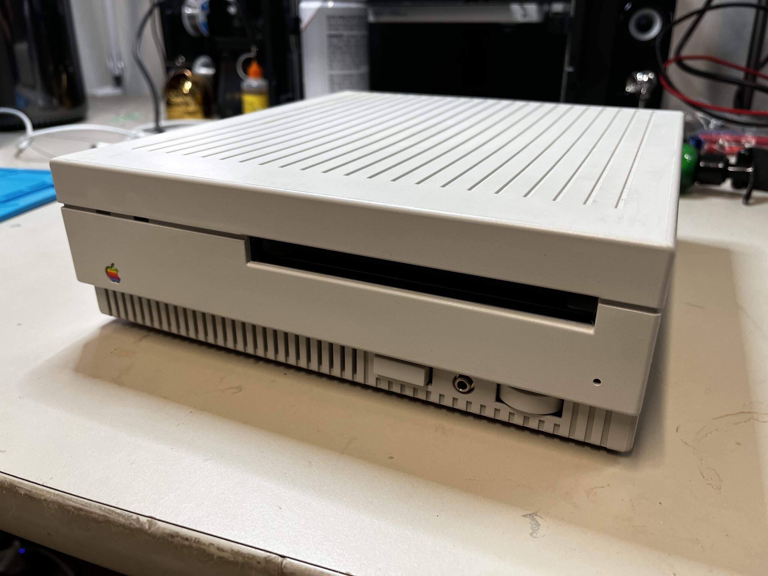 Enjoy Snow White goodness and CDROM speed on your Compact Mac. The original CDROM is in perfect cosmetic shape and has no yellowing. It has not been retrobrited. System turns on and LED lights- you need a CDROM carrier to use and it may need caps to work.