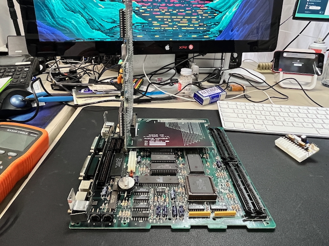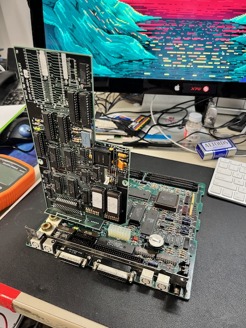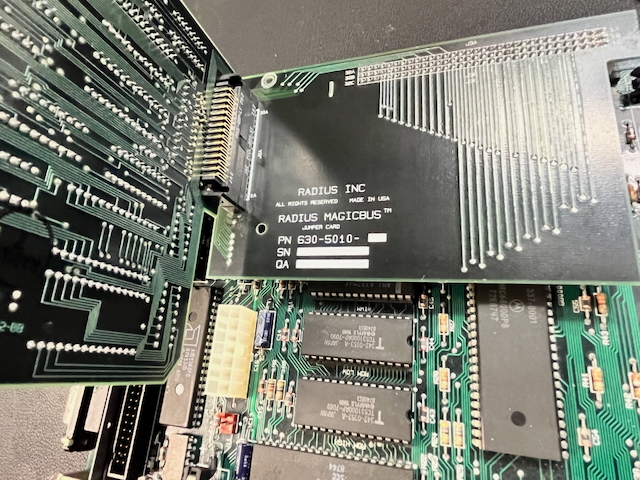 Radius 2 Page display card for compact Macintosh. Comes with Radius Magic Bus card for SE. NEEDS the Cable from the card to a CRT. NEEDS a CRT. Just the cards are for sale. Motherboard is not included.