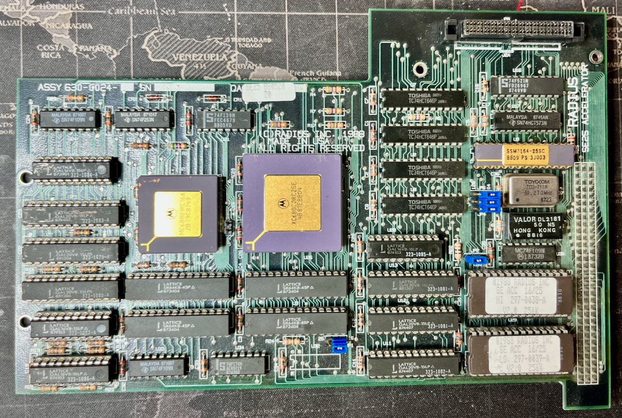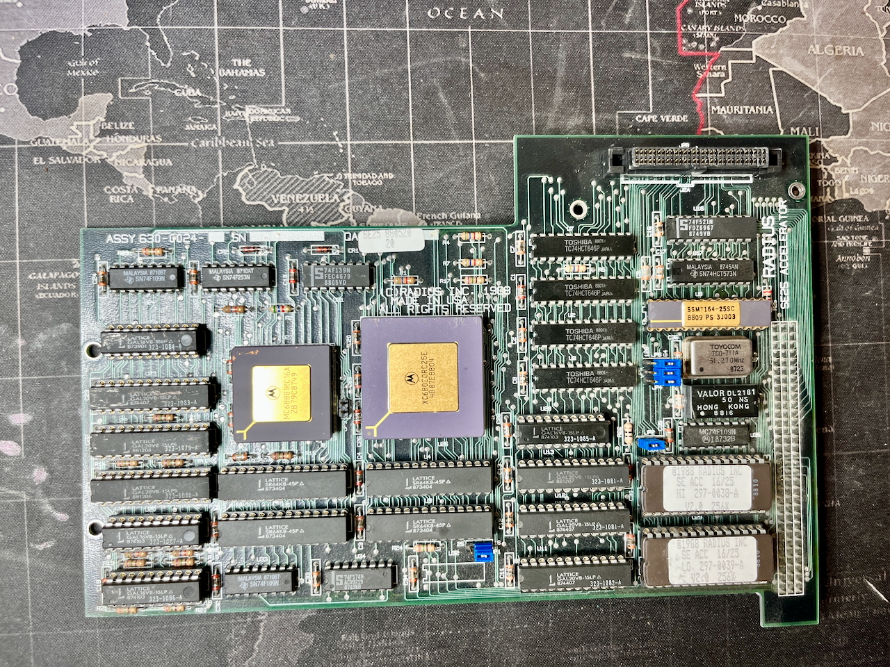 This is a working 020, 25mhz accelerator card for a macintosh SE. Works perfectly in a SE.